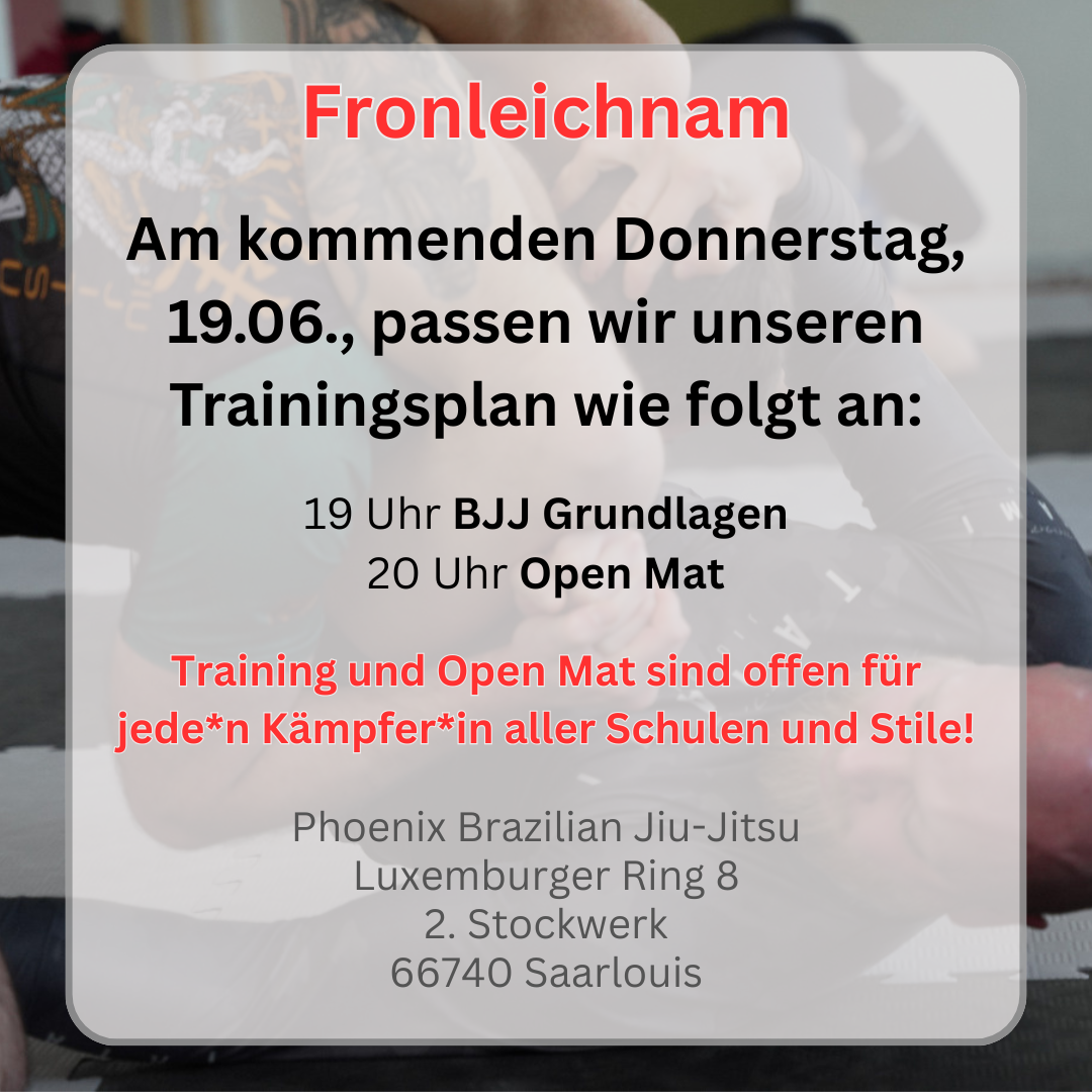 Zu Fronleichnam (Donnerstag, 19.06.) werden wir wie folgt trainieren: